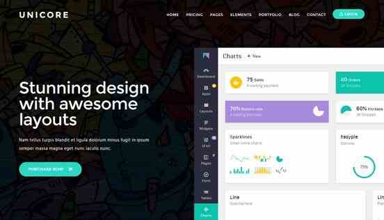 Unicore is hands down the most flexible and enjoyable HTML template. It was built with the awesome bootstrap framework and with multiple layouts and more.